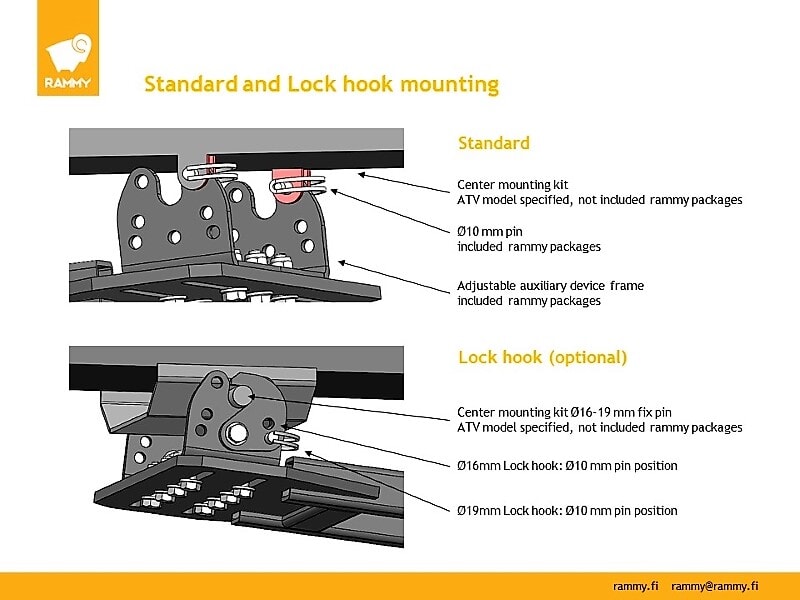 Med den justerbare rammen er denne Rammy egnet for nesten alle 4×4 ATV-er. Hvis SENTERMONTERINGSSETTET er på bunnen av din ATV, kan Rammy brukes med eksisterende festemidler. Trenger du disse (ikke inkludert i standardleveransen), har vi SENTERMONTERINGS. Sentermonteringssett er også tilgjengelig i nettbutikken.
