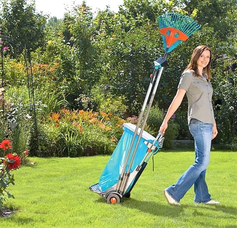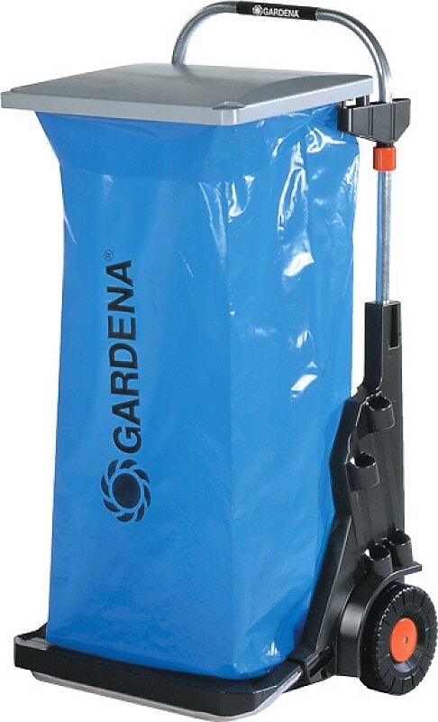 GARDENA hagevogn har mange anvendelsesområder, som enkel samling og fjerning av hageavfall, ugress, sammenpresset gress og søppel. Den er utstyrt med store, kraftige hjul med et spesielt mønster som gir godt feste og skåner plenen, og en solid metallramme som tåler en vekt på opptil 70 kg. Lokket har dobbelfunksjon og er praktisk: Det beskytter mot lukt og fuktighet, og kan også brukes som søppelbrett. Det rustfrie materialet gir lang levetid. Poseholderen kan justeres i høyden, noe som gjør det enkelt å fylle avfallsposen som kan festes med klemmer. Hagevognen kan også brukes til avfallssortering da to poser kan festes ved siden av hverandre. Den har lagringsplass for to Combisystem-skaft og to små redskaper, for eksempel Combisystem-redskaper, håndbørste osv. Hvis poseholderen fjernes, kan hagevognen også brukes som tralle til enkel transport av frukt- og flaskekasser. Imens kan du henge stativet og avfallsposen på veggen. GARDENA hagevogn er fullt utstyrt med et stativ til veggmontering og en avfallspose.