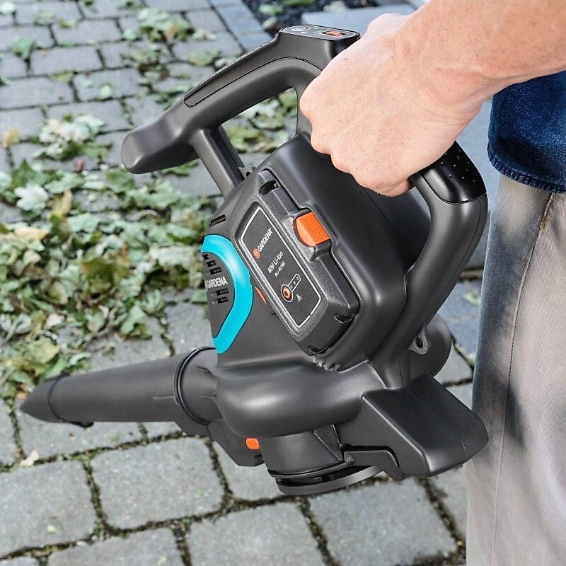 Den kraftige og brukervennlige GARDENA Battery Garden Vac / Blower PowerJet Li-40 fjerner rusk, blader og gresskutt fra tomter raskt og enkelt med en slaghastighet på, opptil 320 km/t eller sugekraft på 160 l/s, uten behovet for å bøye seg ned og strekke seg. Et intuitivt tastepanel på håndtaket sørger for høyeste driftskomfort. Utgangen kan trinnløst reguleres for å passe alle applikasjoner. Settet inkluderer batteri og lader. Enheten drives av et forsiktig GARDENA-systembatteri med 40 V * og 4,2 Ah. Batteriet kan raskt lades opp når som helst uten minneeffekt. * Maksimal utgangsspenning uten belastning er 40 V, nominell spenning 36 V.
