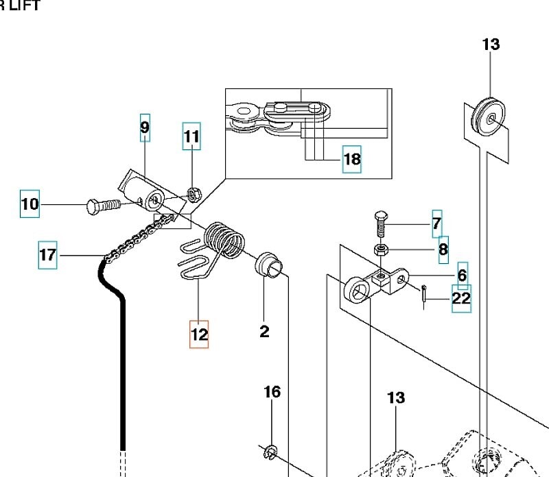 Fjær på løftespak til klippeaggregat.