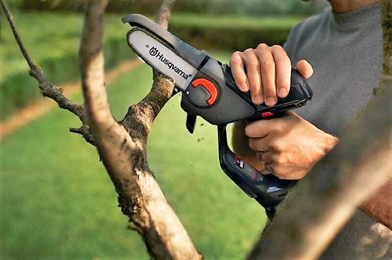 Kraftig elektrisk grensag med smart oppbevaring