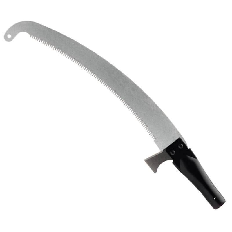 Buet sagblad med krok i forkant, samt såkalt støtkniv for å skjære barken slik at den ikke flises opp.