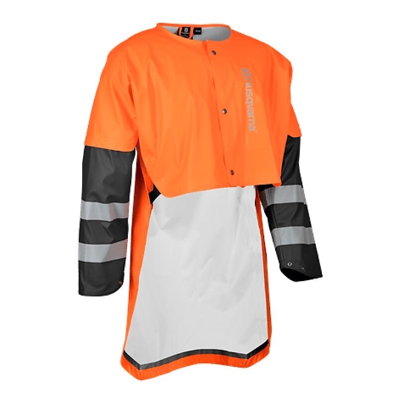 Ryggbeskytter laget av polyesterstrikk med et slitesterkt ensidig PU-belegg med sveisede sømmer - et sterkt, men likevel lett og lydløst stoff. Ryggbeskytteren er designet for de arbeidsstillinger du har mens du bruker motorsag. Ryggbeskytteren har en ekstra lang rygg med en regnleppe for å hjelpe regnet til å renne i sidene når du arbeider i en bøyd stilling. Kan justeres i bredden foran om nødvendig. Godkjent i henhold til EN343. En størrelse.